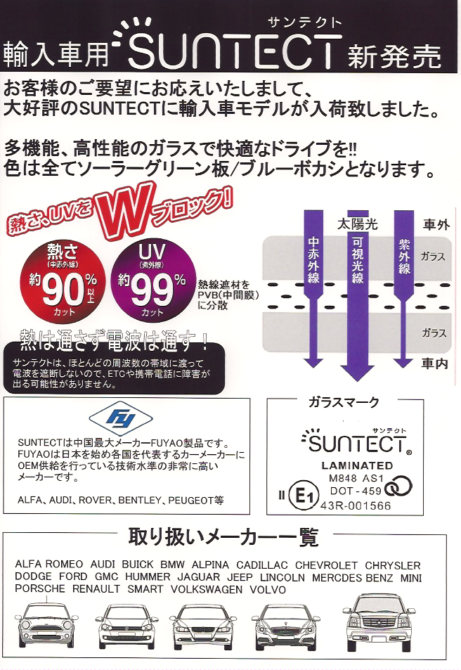 輸入ガラス(海外製ガラス)が心配 そんなお客様に お勧めしたいガラスです 性能、機能は純正ガラスと同等といわれていますが 純正ガラスではない以上 なにごとも過度の期待は禁物です