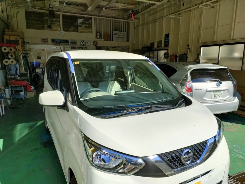 自動車ガラス 交換 修理 日産 DAYS 海外製ブレーキアシストガラス使用 130