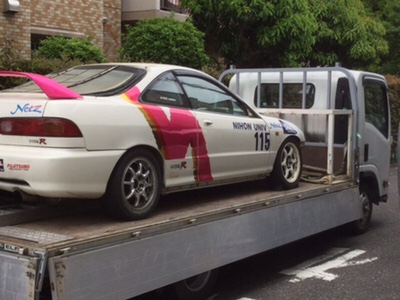 ホンダ インテグラ 日本大学自動車部 フロントガラス 交換 修理 作業