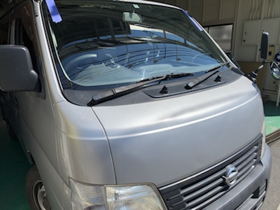 日産 キャラバン E25 海外製UVカットガラス使用 自動車 フロントガラス 交換 修理 作業