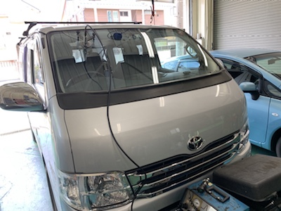 トヨタ ハイエース 飛石によるキズ 自動車 フロントガラス リペア修理 作業 0516
