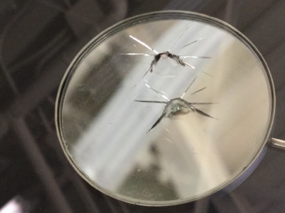 完全にキズが見えなくなる 訳ではありません レジンという透明な接着剤を浸透させ 透明にぼかす作業です キズ中央の衝撃点は残ります だいたい手の親指の爪の大きさより隠れるくらいが 修理の範囲内です 100%強度は戻りません だいたい70%~80%ぐらいの強度ぐらいです キズからヒビが伸びてしまいましたら ガラス交換になってしまいますので いち早くリペア修理を決断しましょう
