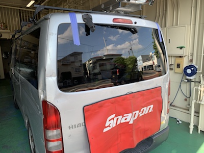 トヨタ ハイエース リアガラス 交換 作業 0706
