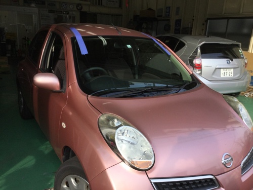 日産 マーチ 海外製UVカットガラス使用 自動車 フロントガラス 交換 修理 0629