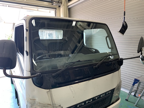 三菱ふそう キャンター 海外製UVカットガラス使用 自動車 フロントガラス 交換修理 1110