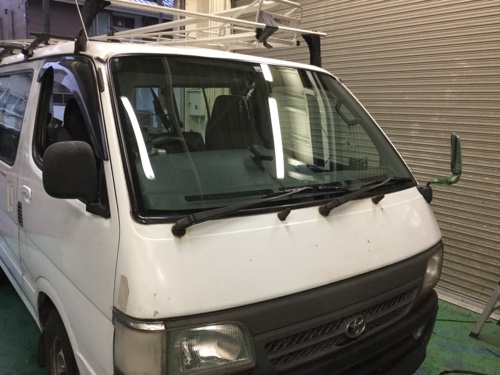 トヨタ ハイエース 海外製UVカットガラス使用 自動車 フロントガラス 交換 修理 0106