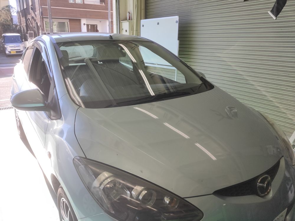 マツダ デミオ 海外製ガラス使用 自動車 フロントガラス 交換 修理 0317