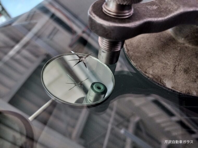 完全にキズが見えなくなる 訳ではありません レジンという透明な接着剤を浸透させ 透明にぼかす作業です キズ中央の衝撃点は残ります だいたい手の親指の爪の大きさより隠れるくらいが 修理の範囲内です 100%強度は戻りません だいたい70%~80%ぐらいの強度ぐらいです キズからヒビが伸びてしまいましたら ガラス交換になってしまいますので いち早くリペア修理を決断しましょう