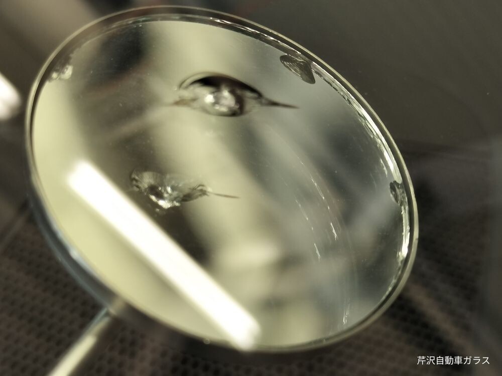 完全にキズが見えなくなる 訳ではありません レジンという透明な接着剤を浸透させ 透明にぼかす作業です キズ中央の衝撃点は残ります だいたい手の親指の爪の大きさより隠れるくらいが 修理の範囲内です 100%強度は戻りません だいたい70%~80%ぐらいの強度ぐらいです キズからヒビが伸びてしまいましたら ガラス交換になってしまいますので いち早くリペア修理を決断しましょう