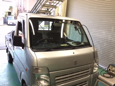 スズキ DA63T キャリー 飛び石によるヒビ 自動車 フロントガラス リペア修理 作業