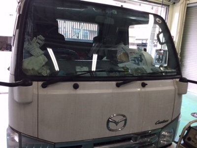 マツダ タイタン 飛び石によるヒビ 自動車 フロントガラス リペア修理 作業