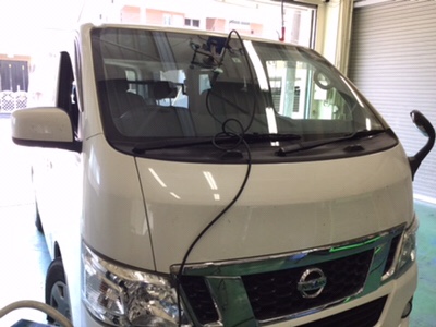 日産 NV350 キャラバン 飛び石によるヒビ 自動車 フロントガラス リペア修理 作業