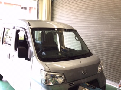 ダイハツ ハイゼット 320 飛び石によるヒビ 自動車 フロントガラス リペア修理 作業