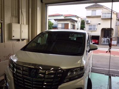 トヨタ アルファード 30 飛び石によるヒビ 自動車 フロントガラス リペア修理 作業
