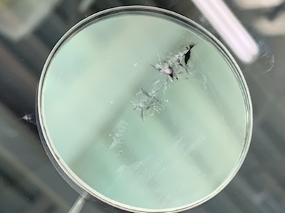 完全にキズが見えなくなる 訳ではありません レジンという透明な接着剤を浸透させ 透明にぼかす作業です キズ中央の衝撃点は残ります だいたい手の親指の爪の大きさより隠れるくらいが 修理の範囲内です 100%強度は戻りません だいたい70%~80%ぐらいの強度ぐらいです キズからヒビが伸びてしまいましたら ガラス交換になってしまいますので いち早くリペア修理を決断しましょう