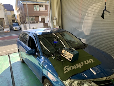 トヨタ カローラ フィールダー 飛び石によるキズ 自動車 フロントガラス リペア修理 作業