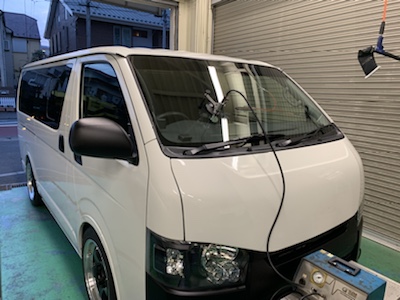 トヨタ ハイエース 飛び石によるキズ フロントガラス リペア修理 作業