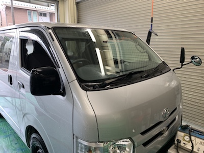 トヨタ ハイエース 飛石によるヒビ フロントガラス リペア修理 作業