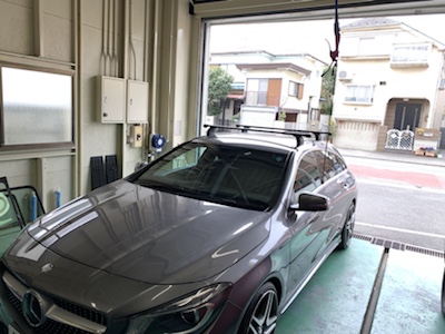 メルセデス ベンツ CLA250 飛び石によるヒビ 自動車 フロントガラス リペア修理 作業