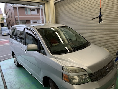 トヨタ ノア 飛石によるヒビ 自動車 フロントガラス リペア修理 作業 0430