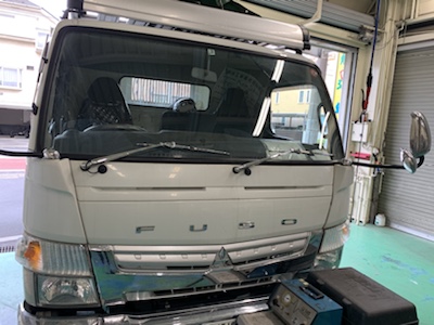 三菱 フソー キャンター 飛石によるキズ フロントガラス リペア修理 作業