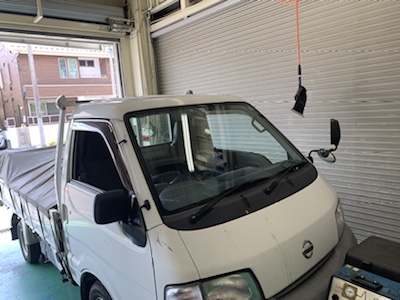日産 バネット 飛石によるヒビ フロントガラス リペア修理 作業