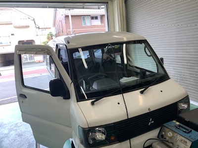 三菱 ミニキャブ 飛石によるキズ 自動車 フロントガラス リペア修理 0630