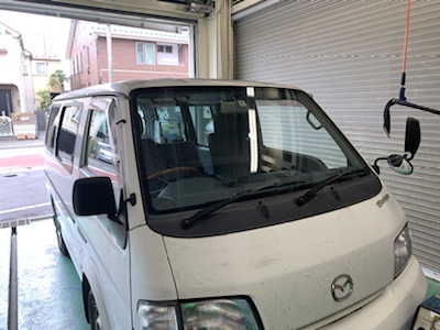 マツダ ボンゴ 飛石によるキズ 自動車 フロントガラス リペア修理 作業 0710