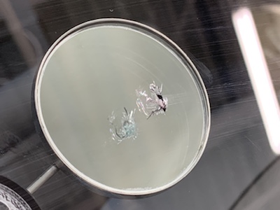 完全にキズが見えなくなる 訳ではありません レジンという透明な接着剤を浸透させ 透明にぼかす作業です キズ中央の衝撃点は残ります だいたい手の親指の爪の大きさより隠れるくらいが 修理の範囲内です 100%強度は戻りません だいたい70%~80%ぐらいの強度ぐらいです キズからヒビが伸びてしまいましたら ガラス交換になってしまいますので いち早くリペア修理を決断しましょう
