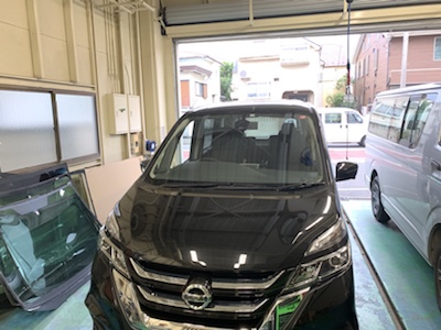 日産 セレナ 飛び石によるヒビ フロントガラス リペア修理 0921
