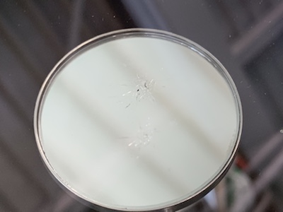 完全にキズが見えなくなる 訳ではありません レジンという透明な接着剤を浸透させ 透明にぼかす作業です キズ中央の衝撃点は残ります だいたい手の親指の爪の大きさより隠れるくらいが 修理の範囲内です 100%強度は戻りません だいたい70%~80%ぐらいの強度ぐらいです キズからヒビが伸びてしまいましたら ガラス交換になってしまいますので いち早くリペア修理を決断しましょう