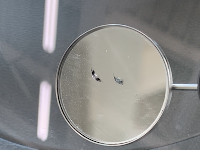 完全にキズが見えなくなる 訳ではありません レジンという透明な接着剤を浸透させ 透明にぼかす作業です キズ中央の衝撃点は残ります だいたい手の親指の爪の大きさより隠れるくらいが 修理の範囲内です 100%強度は戻りません だいたい70%~80%ぐらいの強度ぐらいです キズからヒビが伸びてしまいましたら ガラス交換になってしまいますので いち早くリペア修理を決断しましょう