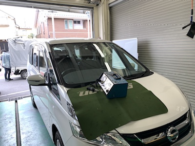 日産 セレナ 飛び石によるヒビ 自動車 フロントガラス リペア修理 0413