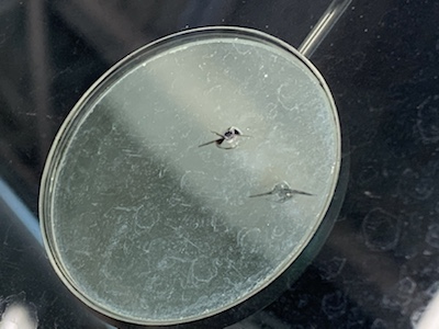 完全にキズが見えなくなる 訳ではありません レジンという透明な接着剤を浸透させ 透明にぼかす作業です キズ中央の衝撃点は残ります だいたい手の親指の爪の大きさより隠れるくらいが 修理の範囲内です 100%強度は戻りません だいたい70%~80%ぐらいの強度ぐらいです キズからヒビが伸びてしまいましたら ガラス交換になってしまいますので いち早くリペア修理を決断しましょう