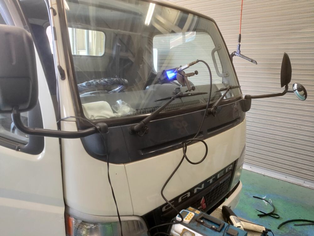 三菱 キャンター 飛び石によるキズ フロントガラス リペア修理 730