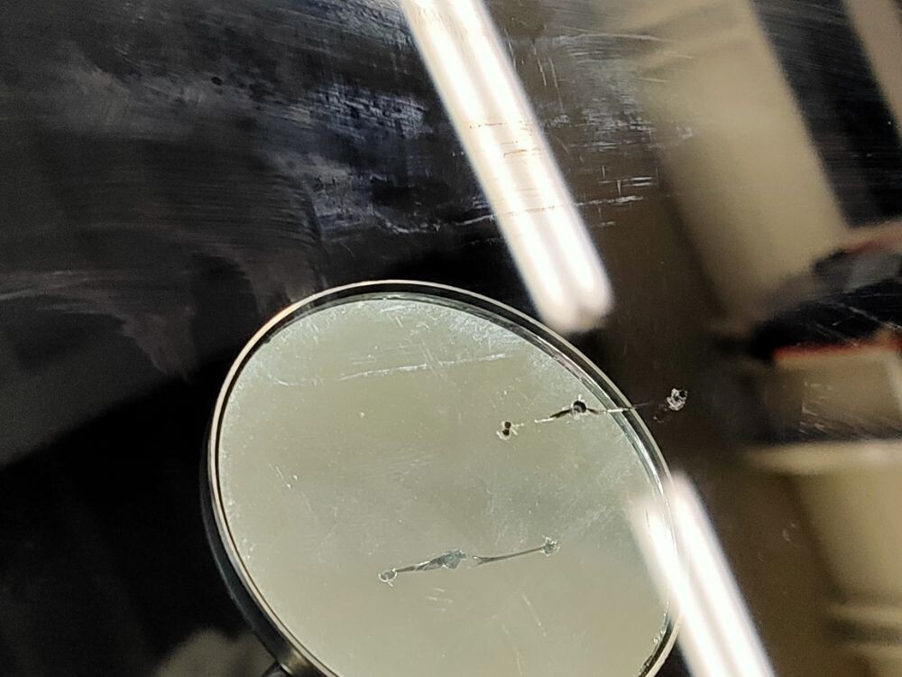 完全にキズが見えなくなる 訳ではありません レジンという透明な接着剤を浸透させ 透明にぼかす作業です キズ中央の衝撃点は残ります だいたい手の親指の爪の大きさより隠れるくらいが 修理の範囲内です 100%強度は戻りません だいたい70%~80%ぐらいの強度ぐらいです キズからヒビが伸びてしまいましたら ガラス交換になってしまいますので いち早くリペア修理を決断しましょう