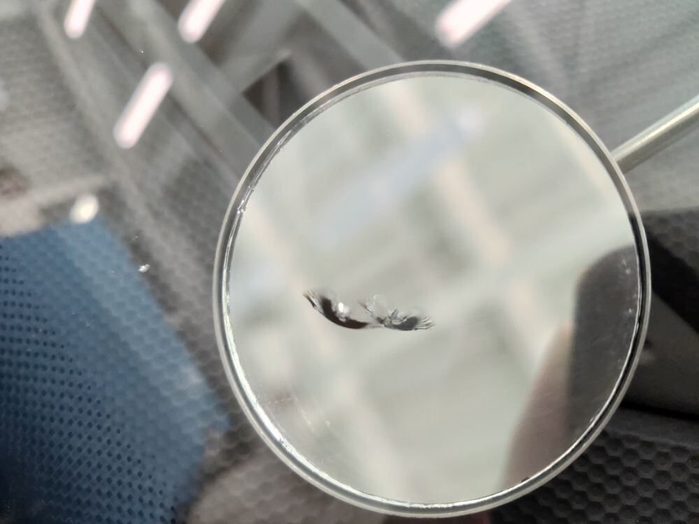完全にキズが見えなくなる 訳ではありません レジンという透明な接着剤を浸透させ 透明にぼかす作業です キズ中央の衝撃点は残ります だいたい手の親指の爪の大きさより隠れるくらいが 修理の範囲内です 100%強度は戻りません だいたい70%~80%ぐらいの強度ぐらいです キズからヒビが伸びてしまいましたら ガラス交換になってしまいますので いち早くリペア修理を決断しましょう。 古いキズに撥水剤などが浸透することによりキズが 汚れてしまい リペア修理しても 仕上がりが悪くなります。キズがついた後 撥水剤を塗らないようお願いいたします。撥水洗車もよくないようです。 キズの状態が放射状に何本もヒビが多い場合にも リペア修理した場合でも仕上がりが悪いようです すぐにリペア修理できない場合は セロテープなどで保護しておいて 2・3日中にご来店頂くと より透明に仕上がります