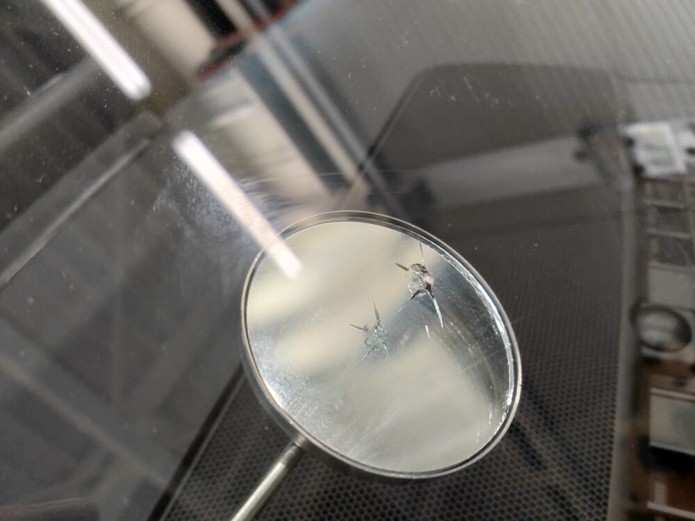 完全にキズが見えなくなる 訳ではありません レジンという透明な接着剤を浸透させ 透明にぼかす作業です キズ中央の衝撃点は残ります だいたい手の親指の爪の大きさより隠れるくらいが 修理の範囲内です 100%強度は戻りません だいたい70%~80%ぐらいの強度ぐらいです キズからヒビが伸びてしまいましたら ガラス交換になってしまいますので いち早くリペア修理を決断しましょう