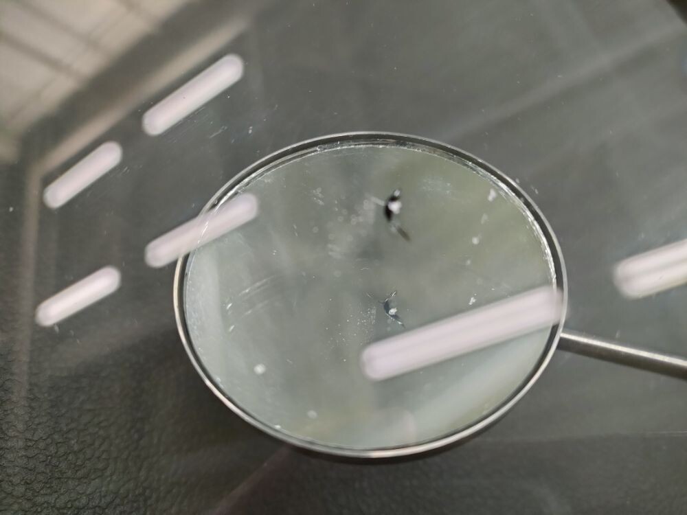 完全にキズが見えなくなる 訳ではありません レジンという透明な接着剤を浸透させ 透明にぼかす作業です キズ中央の衝撃点は残ります だいたい手の親指の爪の大きさより隠れるくらいが 修理の範囲内です 100%強度は戻りません だいたい70%~80%ぐらいの強度ぐらいです キズからヒビが伸びてしまいましたら ガラス交換になってしまいますので いち早くリペア修理を決断しましょう