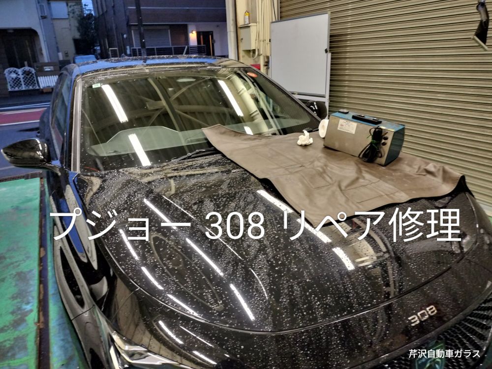 プジョー 308 飛び石による キズ フロントガラス リペア修理 224